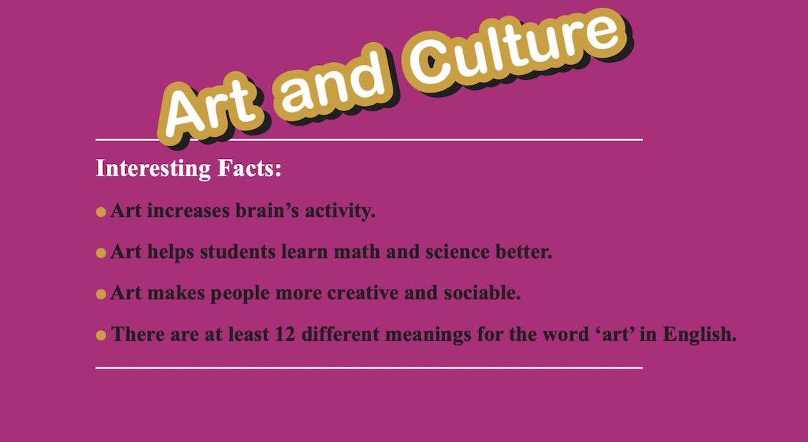 Art is what people create with imagination and skill. As a part of culture, it shows the way of life and identity of a nation and reflects the history of a society. In fact, the history of humankind is the history of art. If we want to know a country or a nation well, we should study its art.